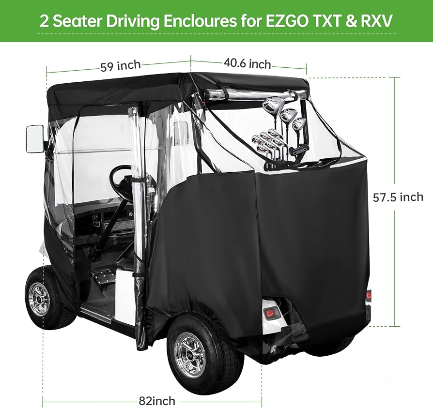10l0l 2 Passenger Golf Cart Case For Ezgo Txt With Side Mirror Openings Waterproof Portable 4 Sided Clear Window Golf Buggy Cover Black Roof Up To 58 L Amazon De Sports Outdoors